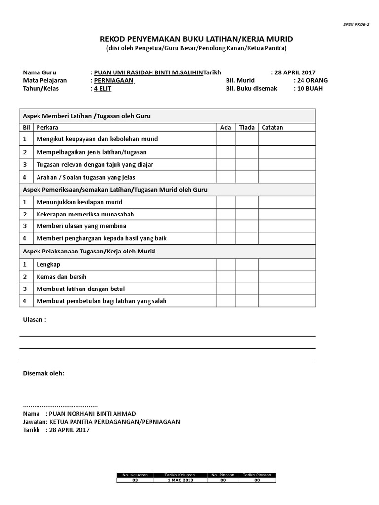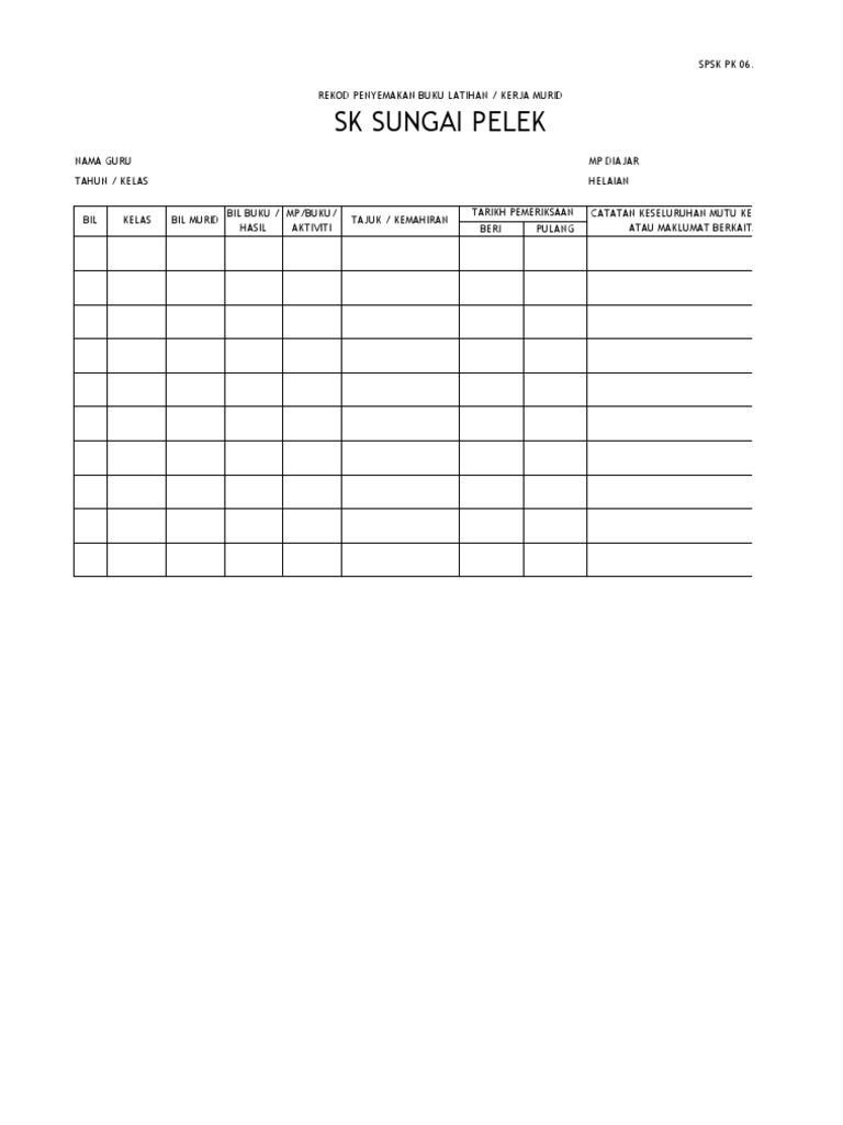 SPSK PK06-1 REKOD PENYEMAKAN BUKU LATIHANKERJA MURID Nama Guru. Borang semakan buku kerja murid. Physics classroom rekod penyemakan buku latihan spsk pk06 01.