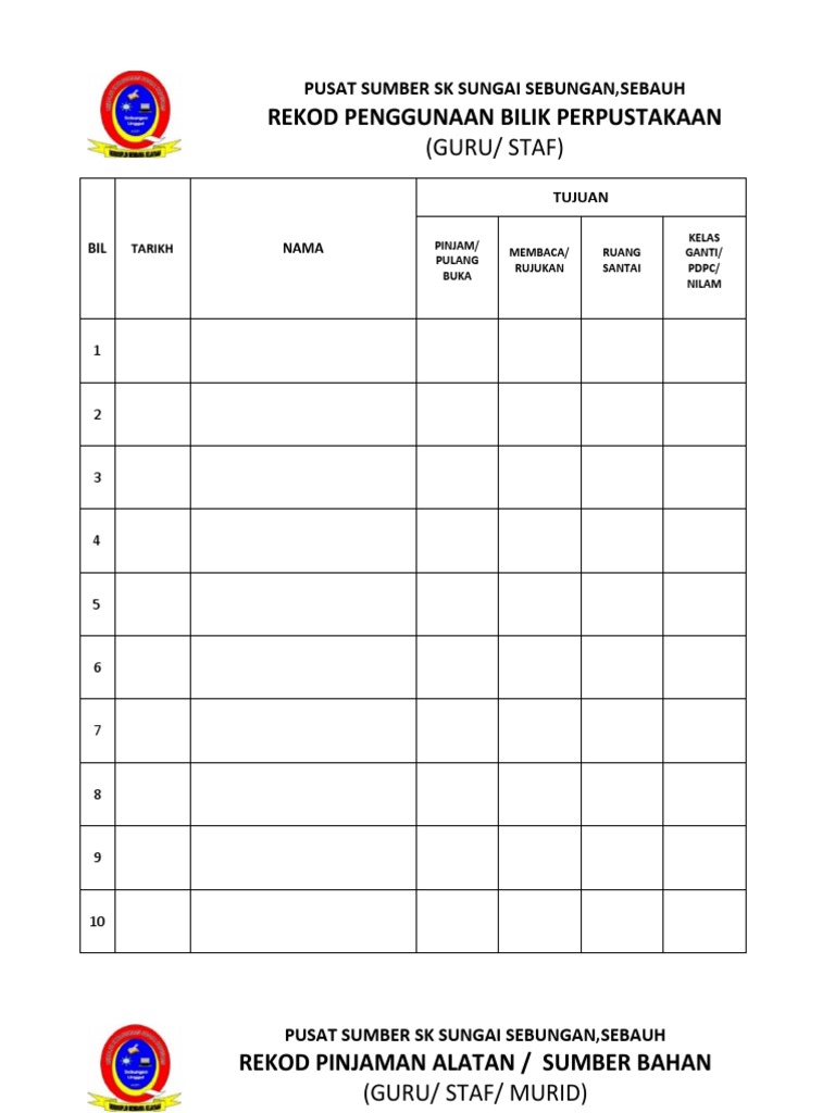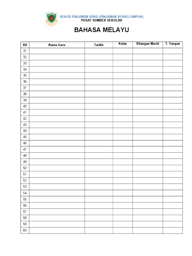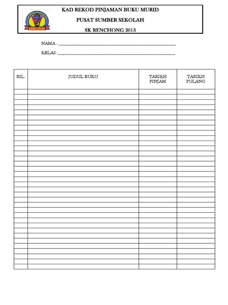 Rekod Pinjaman Buku Guru dan Pelajar. Borang Rekod Pinjaman Buku. Rekod Pinjaman Peralatan Guru dan Pelajar.