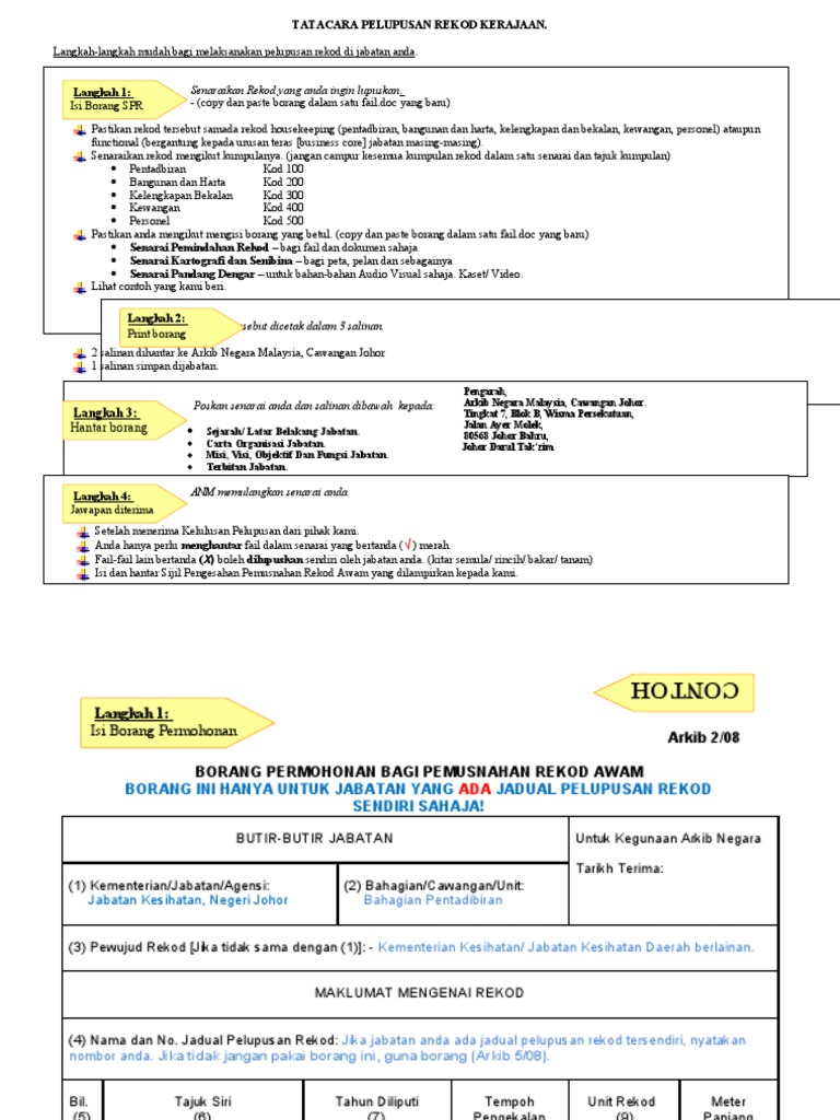 Fail yang diperlukan belum ada. Contextual translation of slide tatacara pelupusan rekod jabatan kerajaan into English. Dengan adanya panduan ini pelupusan rekod-rekod yang terdapat di.