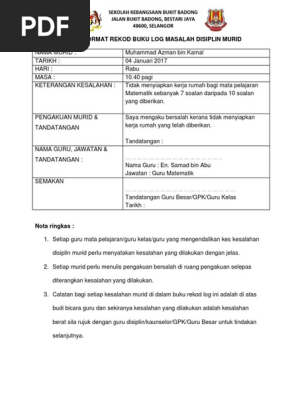 Borang rekod kesalahan disiplin murid there is document borang rekod kesalahan disiplin murid available here for reading and downloading. Rekod disiplin yang tersusun memudahkan PK Hem atau guru disiplin membentangkan analisa kesalahan disiplin. Seterusnya menurut Mohd Ismail 2006 di dalam pengurusan disiplin pelajar ia berkait rapat dengan kawalan disiplin pelajar oleh pihak sekolah melibatkan tiga aspek tindakan iaitu.