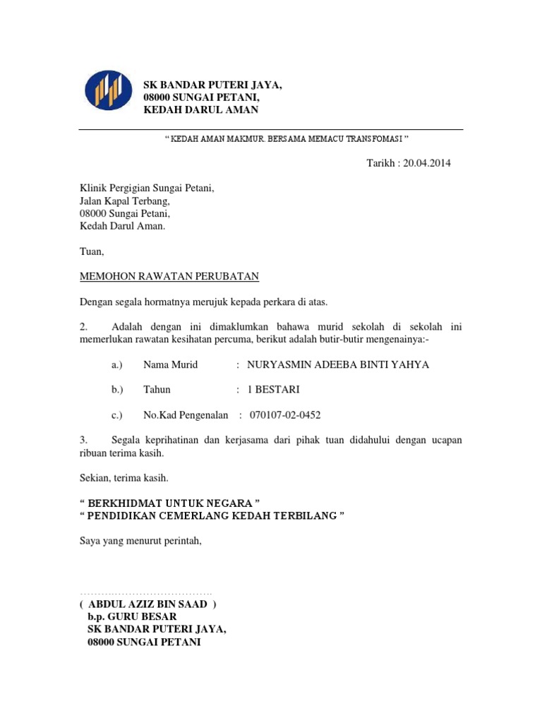Contoh Surat Rasmi Permohonan Laporan Perubatan Malay Juise