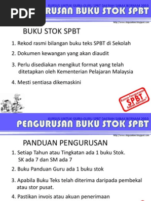 Rekod serahan buku oleh pembekal. 92 Jika tidak perlu sediakan dokumen untuk pembayaran. Tentukan salinan rekod Perolehan Secara Pembelian Terus dikemukakan kepada Pegawai PengawalKetua Jabatan dan UAD setiap 3 bulan sekali. Dikenalpasti sebagai harta kepunyaan Pembeli.