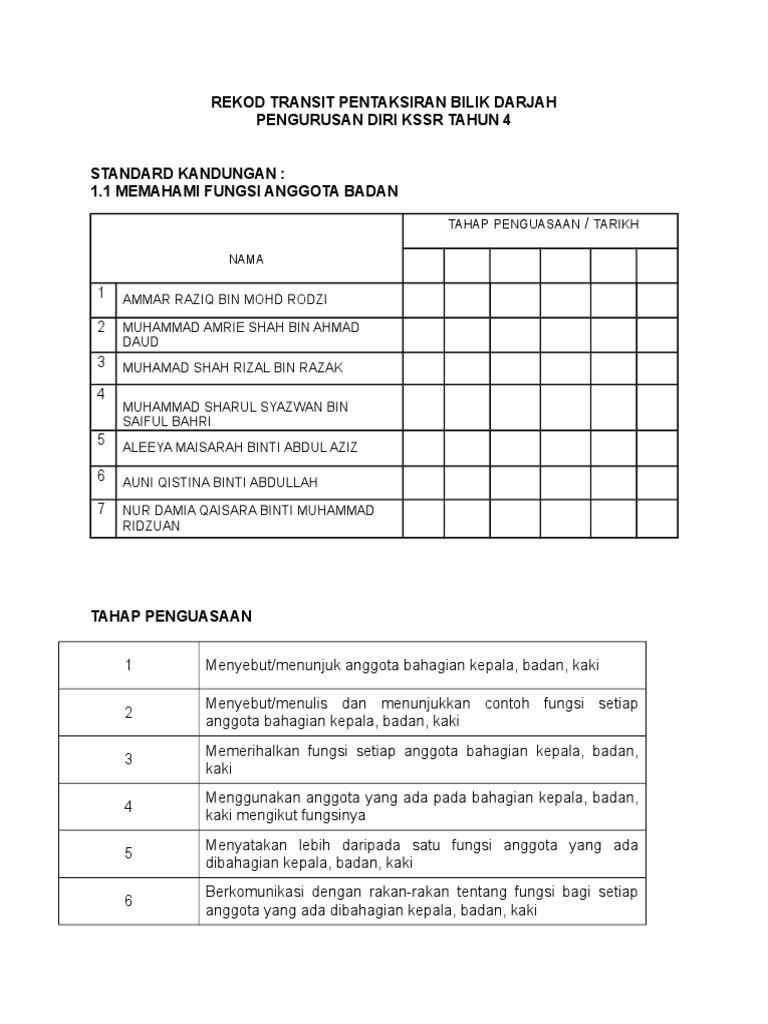 Koleksi Terkini Templat Pelaporan PBD KSSR Tahun 4 SK SJK SJKC SJKT. Borang Transit Pbs Bahasa Melayu Tahun 1. Standard prestasi catatan 10 20 30 11 21 22.