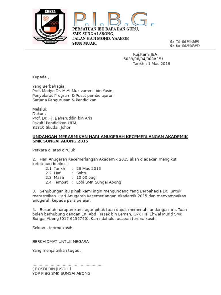 Jalan semenyih 43000 kajang selangor darul ehsan. Kad jemputan ini berdasarkan buku program hari anugerah cemerlang v1. Contoh surat jemputan yb by ct hussen 33177 views.
