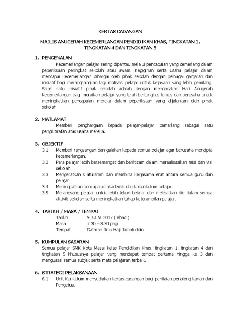Doc Kertas Kerja Majlis Anugerah Kecemerlangan Smk Bukit Saujana 2018 Saujana Smkbs Academia Edu