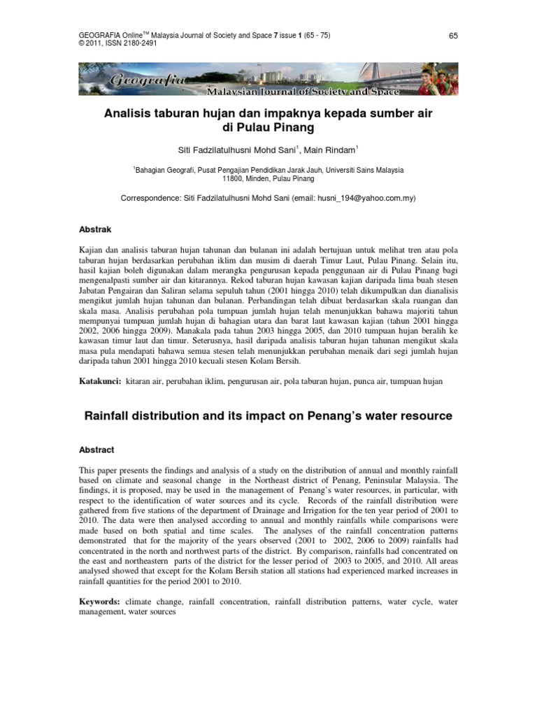 Analisis Taburan Hujan Dan Impaknya Kepada Sumber Air