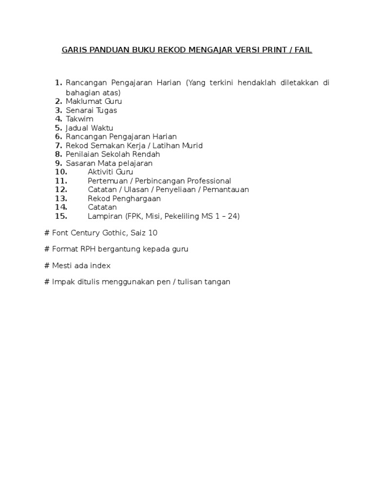 Berikut merupakan kandungan paling asas yang perlu dimuatkan Fail Rekod Pengajaran dan Pembelajaran. BIL 9 1999 REKOD MENGAJAR PENYEDIAAN REKOD MENGAJAR 4. Click to expand document information.