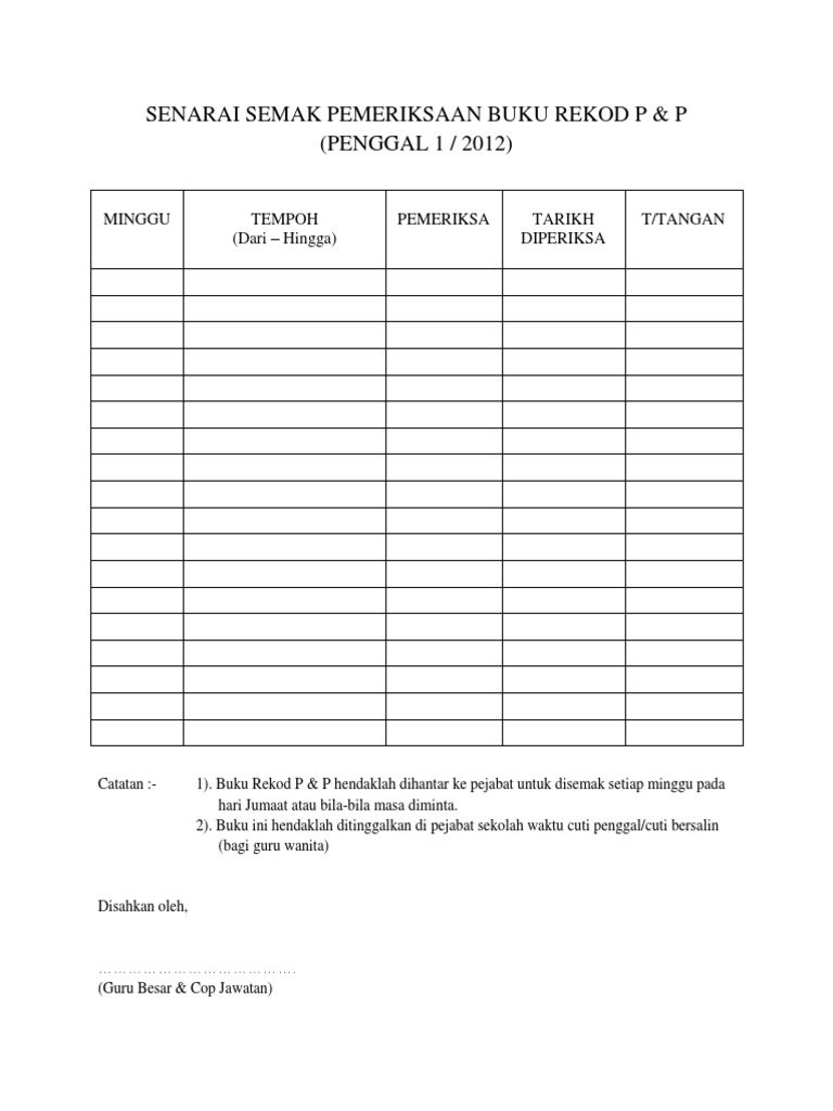 Sebelum menandatangani senarai semak sila pastikan semua butiran telah disemak dengan teliti. Senarai semak perlu dilengkapkan secepat mungkin selepas melaporkan diri Senarai semak perlu difailkan dalam fail peribadi anggota. Contoh Rekod Senarai Semak Prasekolah contoh surat cuti bersalin swasta contoh surat cover letter bahasa melayu contoh surat cuti tanpa gaji contoh surat arahan tanggung kerja contoh surat cuti tanpa gaji semasa pkp contoh surat bersara pilihan contoh surat hak penjagaan anak untuk sekolah contoh surat akuan sumpah serah tanah contoh surat amaran pekerja contoh surat cuti sakit.