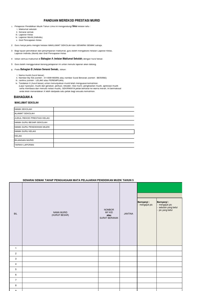Template rekod aktiviti murid doc. PANDUAN PENGGUNAAN TEMPLAT PENTAKSIRAN BILIK DARJAH PBD PENDIDIKAN KESENIAN PENGENALAN A MAKLUMAT AM 1. Evidence Dunia Muzik SJKC Tahun 2 by Inin Mei Yit credited to Wongs sky drive Instrumen Bahasa Tamil Tahun 2 shared by Thilagamalar Sathiah. For more information and source see on this link.
