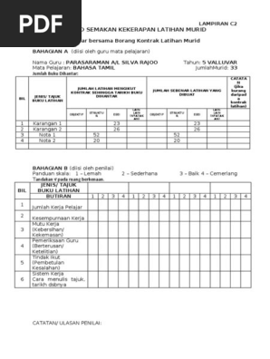 Semakan hasil kerja murid by afandir_1. Panitia borang semakan buku latihan murid. LAMPIRAN C2 REKOD SEMAKAN KEKERAPAN LATIHAN MURID Borang ini dihantar bersama Borang Kontrak Latihan Murid Lampiran VI BAHAGIAN A diisi oleh guru mata pelajaran Nama Guru.