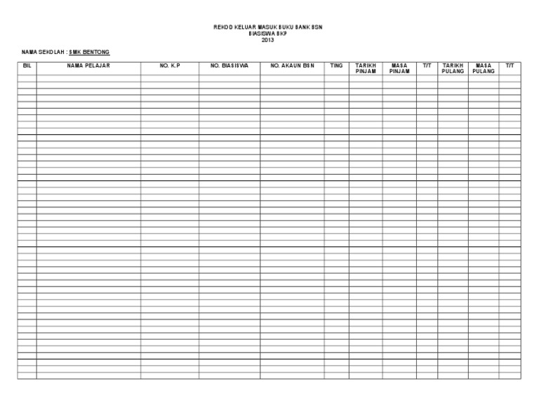 Rekod Keluar Masuk Buku Bank Bsn