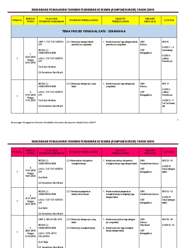 Rpt Kssr Pendidikan Kesenian Muzik Tahun 3 2019