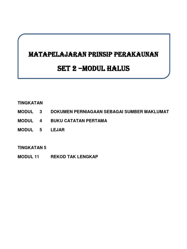 Prinsip Perakaunan Skema Jawapan. NOTA MENGIKUT MODUL MODUL 1. Puan Halimaton pemilik Perniagaan Hamat di Yan menyimpan rekod perakaunannya tidak mengikut sistem catatan bergu.