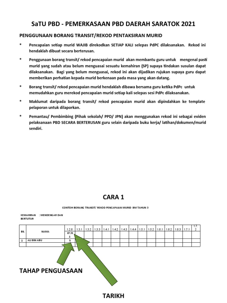 BORANG REKOD TRANSIT UNTUK LAPORAN PENCAPAIAN STANDARD PRESTASI TAHUN 1 1. PBD Pentaksiran Bilik Darjah. Nota Padat EDUP3063 - Pentaksiran Dalam Pendidikan 1.
